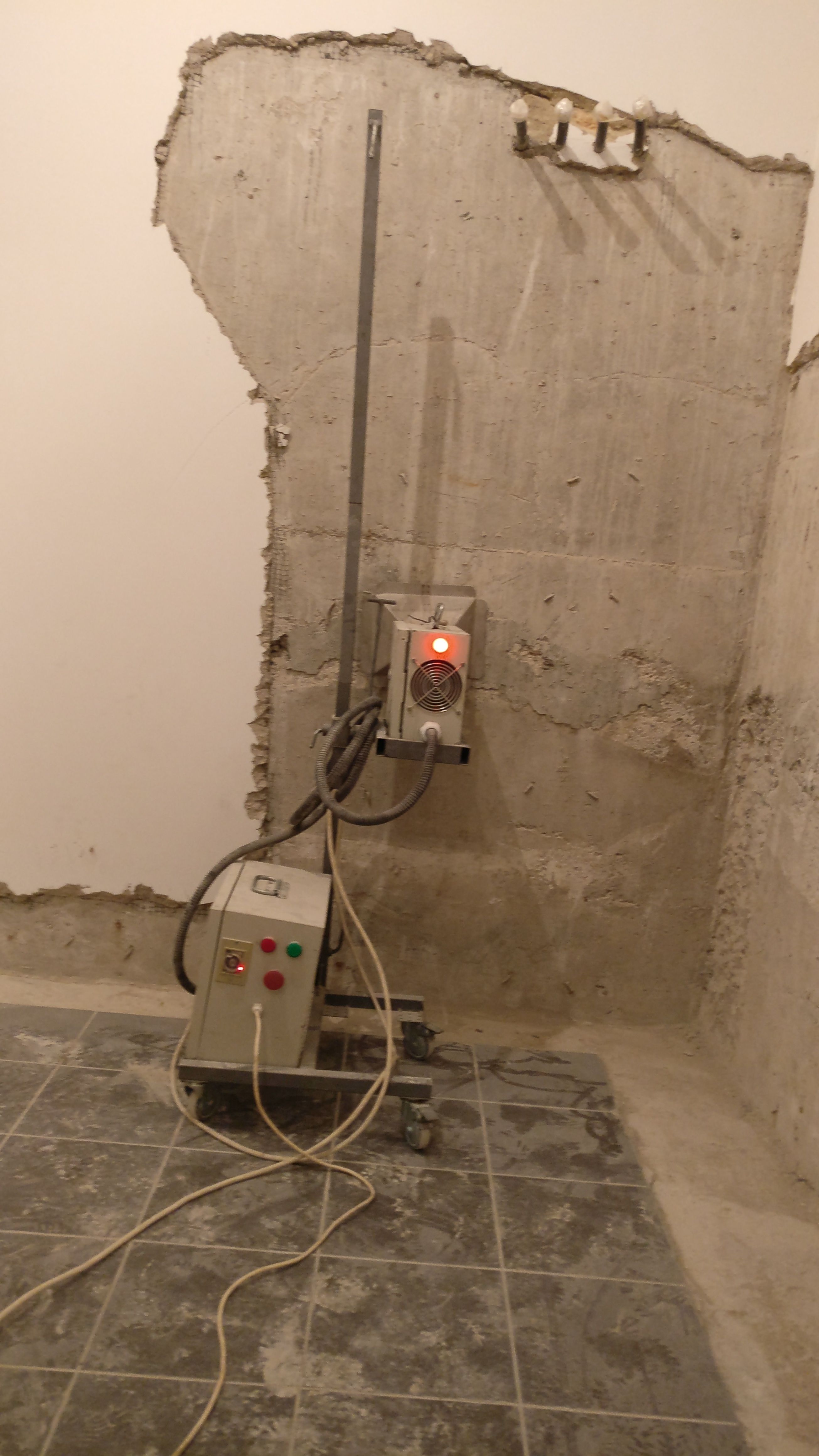 Так же как плесень любит сырость и влагу, так же она ненавидит тепло и сухость. Идеальный метод обработки любых поверхностей от плесени это СВЧ. Материал прогревается участками 50*50 до температуры 65-70 градусов буквально за несколько минут на глубину 25-35 см. Грибница плесени не выдерживает таких температур и полностью погибает. Наши специалисты используют лазерные пирометры для точного определения температуры нагреваемой поверхности так как споры плесени спокойно чувствуют себя при температуре до 60 градусов. Это просто необходимо контролировать. Измерение температуры обычным термометром не подойдет так как необходимо учитывать коэффициент теплоотдачи каждого материала в отдельности для точного измерения. В домашних условиях — это практически невозможно без необходимого оборудования